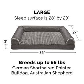 Furhaven Cama ortopédica para cães grandes/médios com almofadas removíveis e capa lavável, para cães de até 25 kg - Sofá luxuoso de pele sintética e linho de desempenho - carvão, grande