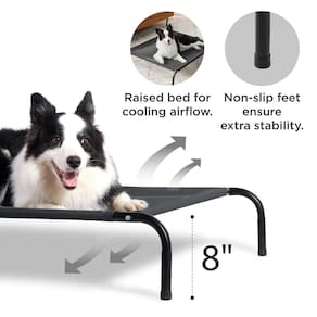 Bedsure Cama grande elevada para cães ao ar livre - Conforto refrescante: o design elevado desta cama para cães aumenta o fluxo de ar para conforto em todas as estações, mantendo seu animal de estimação fresco mesmo em dias quentes. A altura é ideal para cães de todas as idades, de filhotes a idosos. - Uso interno e externo: resistente ao clima, o berço de malha respirável elevado de 20 cm funciona muito bem em ambientes internos e externos. Mantenha seu filhote seco e confortável no quintal, no pátio ou varanda, ao lado da piscina ou enquanto acampa. - Forte e durável: a malha Teslin resistente resiste a arranhões e mastigação, oferecendo excelente suporte e distribuição uniforme de pressão para reduzir dores nas articulações e músculos. A armação de metal leve testada em resistência suporta cães de até 34 kg. - Fácil de cuidar: esta cama refrescante para cães é super fácil de limpar. Lave a tela com água da torneira, uma mangueira ou uma toalha úmida. Para uma limpeza mais profunda, use sabão neutro ou limpador natural de todas as superfícies e enxágue completamente. - Montagem rápida: a configuração leva apenas alguns minutos. O design leve desta cama elevada para cães oferece maior portabilidade e simplifica a viagem. - Atualização de tamanho importante: Observe que, devido a uma atualização recente em nossa embalagem, o tamanho indicado na caixa pode ser diferente do tamanho real do produto. Por exemplo, uma caixa marcada como "L" contém uma cama tamanho "S", "XL" contém "M", "XXL" contém "L" e "XXXL" contém "XL". Fique tranquilo, o produto interno está correto. Recomendamos que você abra o pacote para verificar se o tamanho é apropriado para o seu animal de estimação.
