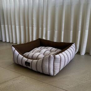Cama para Cachorro Quadrada em Poliéster Listrada Marrom e Cinza Grande (GG) 50 x 50 cm - Informações