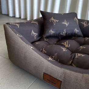 Cama para Cachorro Retangular em Corino + Poliéster Marrom Claro LV Média (M) 55 x 42 cm - Informações