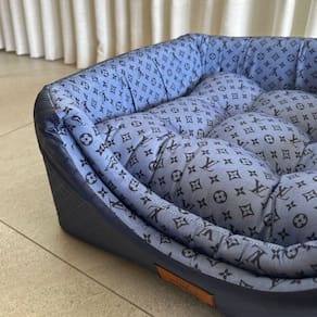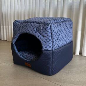 Cama para Cachorro Toca Quadrada em Corino + Poliéster Azul LV Média (M) 40 x 40 x 40 cm - InformaçõesTamanho: M - 40 x 40 x 40 cm.