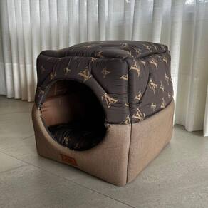 Cama para Cachorro Toca Quadrada em Corino + Poliéster Marrom Claro LV Grande (GG) 55 x 55 x 55 cm - InformaçõesTamanho: GG - 55 x 55 x 55 cm.
