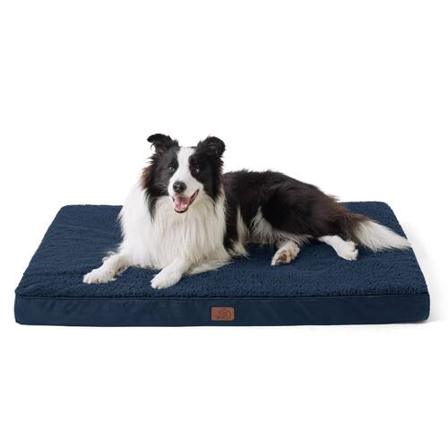 Bedsure Cama grande para cães – camas ortopédicas impermeáveis para filhotes com capa lavável removível, tapete de espuma para ovos, adequado para animais de estimação de até 40,8 kg - Projetado para animais de estimação: o design clássico do colchão da cama para animais de estimação dá ao seu amigo fofo muito espaço para se espalhar e ficar confortável em qualquer posição. Fácil de transportar e ideal para uso interno e externo, em uma caixa, no seu carro ou onde quer que a vida leve você. - Durabilidade elegante: o design minimalista e clássico desta cama a diferencia, oferecendo uma solução elegante e prática para camas de animais de estimação. Feita com tecido Oxford de alta qualidade, não é apenas visualmente atraente, mas também robusta e fácil de manter. - Suporte ortopédico: projetado para dar ao seu animal de estimação suporte incomparável para um sono profundo e sonhador. A espuma de alta densidade distribui o peso uniformemente e oferece a quantidade perfeita de alívio de pressão para reduzir a dor nas articulações e o desconforto da artrite. - Materiais seguros para animais de estimação: espuma certificada CertiPUR-US e sherpa de luxo se unem para criar uma cama de cachorro tão segura quanto confortável. - Capa removível de fácil manutenção: com uma capa fácil de remover, durável e resistente a manchas que facilita a limpeza profunda. Basta lavar e secar na máquina.