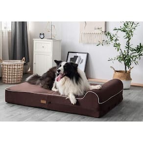 - ? Cama ortopédica extragrande para cães: esta cama jumbo para cães tem 127 cm de largura e 86 cm de largura, feita de espuma de memória de 17 cm de espessura que alivia a pressão nas articulações e possui um apoio de cabeça de 7,6 cm de espessura que suporta a cabeça do cão, para conforto ideal.