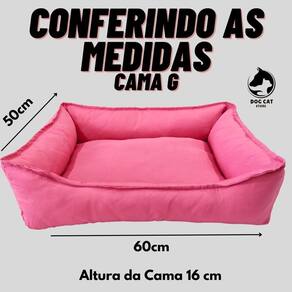 01 cama pet retangular tamanho: g Medidas: comprimento 60 cm x largura 50 cm x altura 16 cm medidas externas