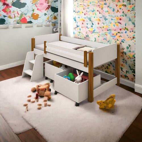 Transforme o quarto do seu filho em um espaço diido e funcional com essa incrível cama! Além de proporcionar uma noite de sono tranquila, ela também possui dois nichos espaçosos para armazenar brinquedos, livros e objetos pessoais, mantendo tudo organizado.