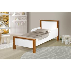 cama pequena infantil juvenil branco com marrom pes de madeira