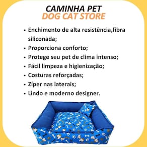 - Enchimento de alta resistência, fibra siliconada; - Protege o seu pet do clima intenso, frio ou calor; - Proporciona conforto; - Fácil limpeza e higienização; - Costuras Reforçadas; - Zíper nas laterais; - Lindo e Moderno Designer.