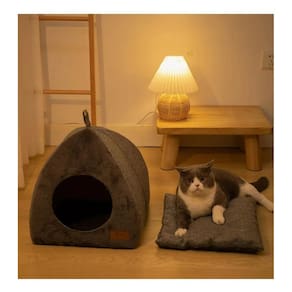 Cama Pet Caverna Tenda Macio Conforto Gato Cachorro Cinza