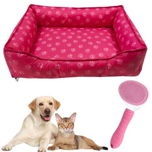 Cama pet luxo retangular impermeável estampada g 60 x 50 + escova pet rasqueadeira