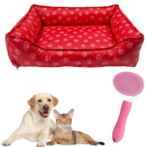 Cama pet luxo retangular impermeável estampada g 60 x 50 + escova pet rasqueadeira Cor: vermelho Seja bem vindo a loja oficial da dog cat store.
