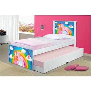 A Bicama Juvenil Adesivada Princesa e Unicórnioé belíssima e conta com um design funcional, que ocupa pouco espaço no ambiente.