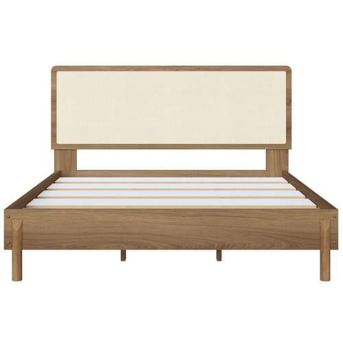Cama Queen 27056 combina design escandinavo com praticidade para o dia a dia. Estrutura em MDP (15/25 mm) e acabamento em pintura BP. No estilo minimalista, é composta por aplique de tela sintética (PVC com poliéster), pés em madeira maciça eucalipto (centrais em MDP 25 mm) e furação extra na cabeceira para ajuste de altura na montagem. Medidas indicadas do colchão: 158x198 cm (não acompanha colchão). Produto entregue em 3 volumes.