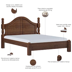 Com linhas que contam histórias de marceneiros artesãos, essa cama de madeira traz uma cabeceira majestosa com design curvo, onde o detalhe vazado e torneado se revela como uma obra de arte funcional. Cada recorte na madeira foi pensado para criar jogos de luz e sombra, transformando o simples ato de deitar em uma experiência sensorial. Os pés torneados robustos sustentam não apenas o colchão queen, mas toda a tradição do design clássico, agora reinterpretada com o padrão da linha Zahav de excelência.