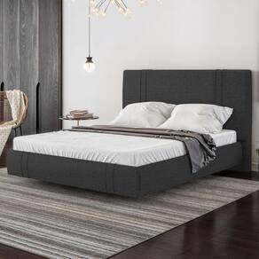 Que tal ter uma cama confortável, elegante e super moderna? Conheça a Cama Queen Flutuante Com Cabeceira 160cm Lyra S05 Linho Preto, da Mpozenato!