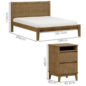 Estrutura: Cama em Madeira Maciça; Mesa de Cabeceira em MDF