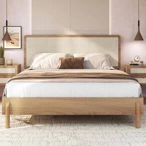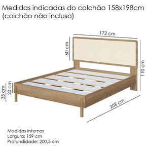Cama Quenn Palhinha Oslo 27056 Pes Madeira 152 cm Artesano - Marrom