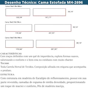 A cabeceira MH-2696 é ideal para trazer mais sofisticação para o quarto, tem design moderno e um acabamento detalhado, produto de grande qualidade que contribui e valoriza ainda mais o ambiente. Com sua estrutura em madeira de Eucalipto de reflorestamento, possui em sua parte revestida, camadas de espuma de média densidade, proporcionando um toque de maciez e conforto. Pés em madeira maciça. Suas medidas são 38 cm de altura, 150 cm de largura e 197 cm de profundidade, ideal para cama de casal. A linha de móveis da Herval é toda fabricada seguindo o certificado FSC, garantindo que seus produtos são ecologicamente corretos.