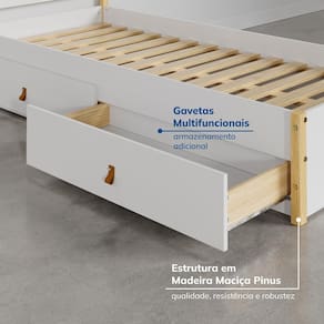 Cama Solteiro 2 Gavetas Íris CabeCasa MadeiraMadeira Branco/Natural
