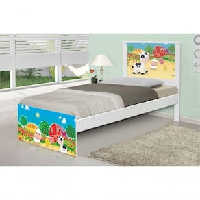 Cama Solteiro Adesivada Fazendinha Colorida Cama Solteiro Juvenil Barcelona Adesivada Fazendinha Colorida Ref. 1456