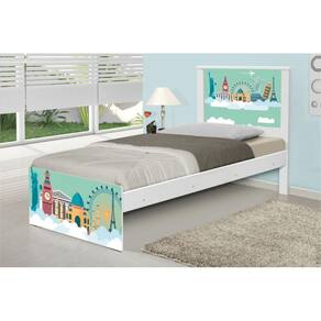 Cama Solteiro Juvenil Barcelona Adesivada Mundo Viagens