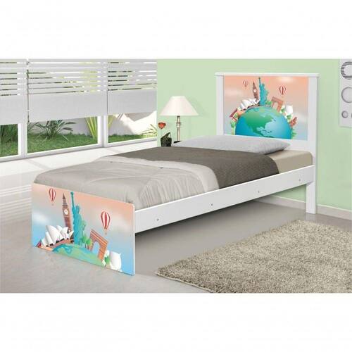 Cama Solteiro Adesivada Volta Ao Mundo Com Colchão Cama Solteiro Juvenil Barcelona Adesivada Volta ao Mundo com Colchão Ref. 1429