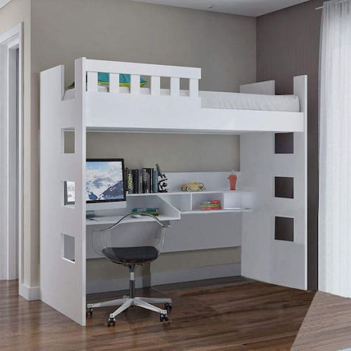 +A+Cama+Alta+com+Escrivaninha+Foscarini+%E9+uma+%F3tima+op%E7%E3o+para+otimizar+o+espa%E7o+em+quartos+menores%2C+proporcionando+mais+praticidade+ao+ambiente.+A+grade+de+prote%E7%E3o+remov%EDvel+confere+ainda+mais+seguran%E7a+para+uma+noite+de+sono+confort%E1vel.+%C9+produzida+100%25+em+MDF%2C+com+acabamento+UV+fosco%2Ftexturizado+o+que+garante+brilho+e+prote%E7%E3o+em+toda+a+superf%EDcie+do+m%F3vel.+Montagem+Flex%EDvel+para+ambos+os+lados.+Cada+cama+suporta+at%E9+100+Kg.+Indicada+para+colch%F5es+de+solteiro+de+88+x+188+cm.+Medidas+montado+%28A+x+L+x+P%29%3A+182+x+195+x+97+cm.+Ideal+para+otimizar+o+espa%E7o+do+seu+quarto.+Aproveite%21 Acabamento: Pintura UV Acabamento da Prateleira: Pintura Texturizada UV Acompanha Cama Auxiliar: Não Acompanha Colchão: Não Altura: 182 cm Altura do Estrado até o Chão: 135 cm calculo: unidade Complexidade da Montagem: Média: pode ser montado por mais de uma pessoa e/ou necessite de maior conhecimento para montagem Cr: Branco Cr do Produto: Branco Escala de Brilho: Fosco Escala de Brilho da Prateleira: Fosco Estilo: Moderno Extensível: Não Itens Inclusos: 1 Cama Escrivaninha e manual de montagem Largura: 195 cm Manual de Montagem e Instalação: https://cdn2.madeiramadeira.com.br/atributo/moveis-foscarini/566397-u231623-beliche-u2316-grade-u2317.pdf Material da Prateleira: MDF Material do Estrado: MDF Material Principal: MDF Montagem Flex: MONTAGEM ESCRIVANINHA AMBOS OS LADOS Necessita Montagem: Sim Origem do Produto: Nacional Permite a Utilização de Cama Auxiliar: Sim Peso: 140 kg Peso Máximo por Prateleira: 10 kg Possui Baú: Não Possui Gavetas: Não Possui Pés: Não Possui Portas: Não Possui Prateleiras: 01 Possui Rodízio: Não Profundidade: 97 cm Recomendações de Uso, Manutenção e Limpeza: Limpar com flanela ou pano macio seco, não utilizar produtos abrasivos, desengordurantes, álcool ou solvente. Não expor o produto diretamente à luz solar e à umidade. Sistema de Montagem: Parafusos, minifix e cavilhas. status-cadastro: Aprovado Suporta Até (kg): 100 kg Tamanho: Tamanho do Colchão Indicado (L x C): 88 x 188 Tipo de Cama: Convencional Tipo de Colchão: Solteiro Tipo de Estrado: Removível