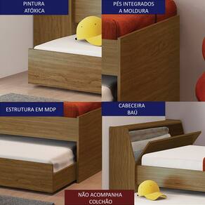 Cama Solteiro Bicama Cabeceira Bau 220x88 BB28 Dtall