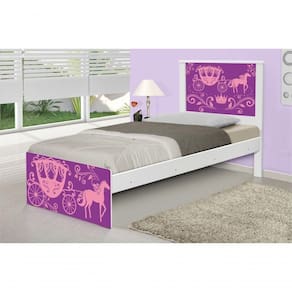 A Cama Barcelona Adesivada Carruagem Princesa é a cama que você procurava para completar seu dormitório com beleza e conforto. A Coleção Carruagem Princesa foi desenvolvida por nossos designers oferecendo um visual exclusivo, descontraído e divertido ao ambiente. Perfeita para ter ótimas noites de sono, com todo o espaço necessário para dormir bem recuperando as energias durante toda a noite. Feita em MDF e MDP e seu acabamento é feito com pintura UV brilhante tornando-a um produto resistente e com aspecto de novo por muito mais tempo. É uma excelente escolha para acomodar colchões de solteiro na medida de 88 cm de largura.
