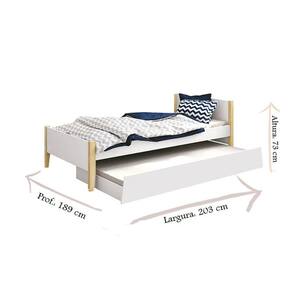 Cama Solteiro com Auxiliar Simba Branco Acetinado com Pés Natural – Reller