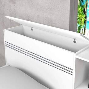 A Cama Solteiro com Baú 2 Gavetas J&A Móveis Branco/Lilás Jade 90x127x218 agrega em um único produto funcionalidade e elegância. Possui três nichos na lateral da cabeceira e duas gavetas integradas na lateral do estrado, além do baú na cabeceira com tampo de abrir, que pode ser utilizado para acomodar travesseiro e roupas de cama por exemplo.