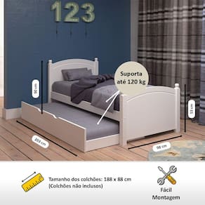 Medidas dos Colchões da Cama Auxiliar (cm x cm): 188x88x14