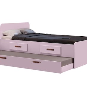 Cama Cindy Solteiro com Gavetas e Cama Auxiliar – Rosa