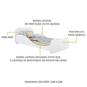 O charme desta incrível cama fica por conta da cabeceira e peseira em formato de nuvem que trazem um