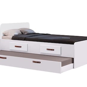 Cama Cindy Solteiro com Gavetas e Cama Auxiliar – Branco