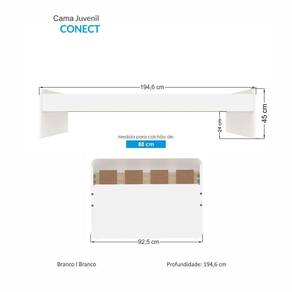 A linha New Conect foi desenvolvida para criar ambientes jovens, únicos, descontraídos e modernos, oferecendo um espaço para criar e sonhar. Esta cama com medida para colchão de 0,88m, possui a opção de encaixe para cama auxiliar e suporta até 90kg (sem impacto). Produto 100% MDF (18 mm), inclusive o estrado. Pode ser usada sozinha, com cama auxiliar se tornando uma bicama, ou acoplada a outros módulos da linha, formando beliches e treliches. Seu acabamento exclusivo REVERSE, proporciona um toque diferenciado com textura em baixo relevo, tudo feito com todos os cuidados necessários de proteção ao meio ambiente, de forma sustentável. Acompanha Cama Auxiliar: Não Acompanha Colchão: Não Altura do Estrado até o Chão: 45 cm Ambiente Principal: Quarto Infantil codigo_ean: 7908308770843 Complexidade da Montagem: Baixa: pode ser montado por uma pessoa sozinha Comprimento: 194.6000 Cor: Branco Cor do Produto: Branco Cor Flex: Não Escala de Brilho: Semi-Fosco Extensível: Não Itens Inclusos: 1 Cama, Kit Ferragens e Manual de Montagem Linha ou Coleção: Conect Manual de Montagem e Instalação: https://product-hub-prd.madeiramadeira.com.br/838311/documents/4a150d9f-96cf-4082-b234-e9fbcb2eff8b217949312camajuvenilconect.pdf Material do Estrado: MDF Material Principal: MDF Montagem Flex: Não Necessita Montagem: Sim Origem do Produto: Nacional Permite a Utilização de Cama Auxiliar: Sim Peso: 29,2 kg Possui Baú: Não Possui Gavetas: Não Possui Pés: Não Possui Portas: Não Possui Prateleiras: Não Possui Rodízio: Não Recomendações de Uso, Manutenção e Limpeza: utilize somente pano seco ou levemente umedecido Sistema de Montagem: Parafusos Suporta Até (kg): 90 kg Tamanho do Colchão Indicado (L x C): 88x188cm Tipo de Cama: Convencional Tipo de Colchão: Solteiro Tipo de Estrado: Fixo