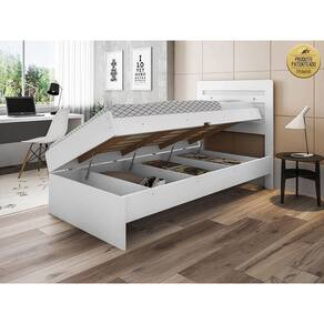 - Possui baú embaixo do estrado. Dimensões: Alt: 22 cm, Larg: 53 cm, Prof: 190 cm