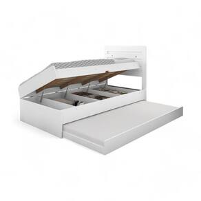 - Possui baú embaixo do estrado. Dimensões: Alt: 22 cm, Larg: 53 cm, Prof: 190 cm