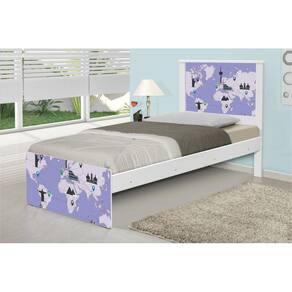 Cama Solteiro Juvenil Barcelona Adesivada Mapa Viagens com Colchão