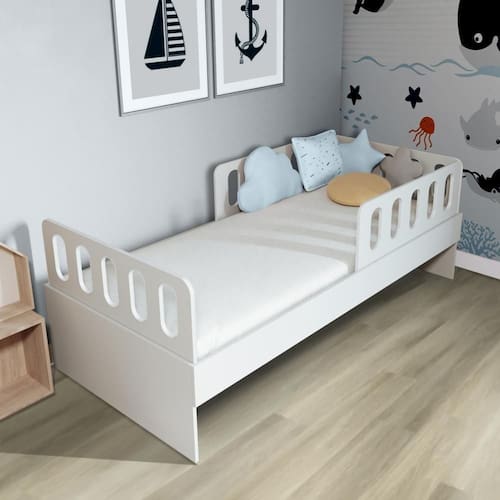 Diferenciais: Grades Removíveis, MDF Melamina 15mm, Estrados em Madeira Maciça, ( 02 Grades e Cabeceira e Peseira Anatômica com Fitas de Borda em PVC Flexível ).