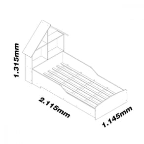 Características: Estrutura em MDF Prateleiras em MDP 15 mm Design em formato de casinha Arte impressa decorativa Para colchões de 88 cm