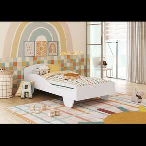 A Cama solteiro Sol é fabricada em MDF e possui pintura atóxica. Seus estrados são fabricados em madeira maciça. A cabeceiras, a peseira e as barras, são de MDF 15 mm.Os Pés são em MDF de 25mm. Essa cama sem os pés se torna uma cama montessoriana.