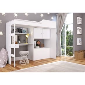 Conheça o Quarto Juvenil com Cama Alta Lion e cama Tókio, fabricado pela Art In Móveis. Sendo uma cama alta de solteiro multifuncional, no modelo Lion, e outra cama de solteiro com quatro portas, no modelo Tókio, para colchões de 188cmx78cm com montagem esquerda ou direita. A Art In Móveis pensando no conforto e praticidade desenvolveu a Quarto Juvenil com Cama Alta Lion e cama Tókio, é compacta e ideal para transformar o seu ambiente. Une várias funcionalidades em um único móvel, dispondo de duas camas de solteiro, escada, escrivaninha com gaveta, baú, prateleiras e armário em um mesmo produto. Produzido em excelente material MDP 15 mm e com acabamento em Finish Foil Acetinado, que garante maior resistência e qualidade em seu móvel. Acabamento: Finish Foil Acompanha Colchão: Não Ambiente: Quarto Cr: Branco Informação Complementar: 1x Cama de Solteiro com 4 Portas Tókio Quarto Branco Largura: 82,2 cm Altura: 42,4 cm Peso: 34,8 kg Profundidade: 192 cm Necessita Montagem: Sim1x Cama Multifuncional com Báu e Estação de Trabalho Lion Montana Branco Largura: 82 cm Altura: 166 cm Peso: 84 kg Profundidade: 192 cm Necessita Montagem: Sim Material Principal: MDP Permite a Utilização de Cama Auxiliar: Não Possui Rodízio: Não Suporta Até (kg): 100 kg Tamanho: