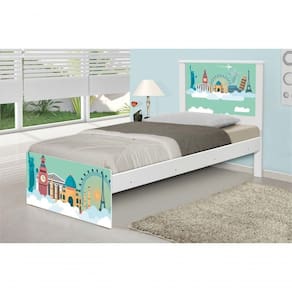 A Cama Barcelona Adesivada Mundo Viagens é a cama que você procurava para completar seu dormitório com beleza e conforto. A Coleção Mundo Viagens foi desenvolvida por nossos designers oferecendo um visual exclusivo, descontraído e divertido ao ambiente. Perfeita para ter ótimas noites de sono, com todo o espaço necessário para dormir bem recuperando as energias durante toda a noite. Feita em MDF e MDP e seu acabamento é feito com pintura UV brilhante tornando-a um produto resistente e com aspecto de novo por muito mais tempo. É uma excelente escolha para acomodar colchões de solteiro na medida de 88 cm de largura.