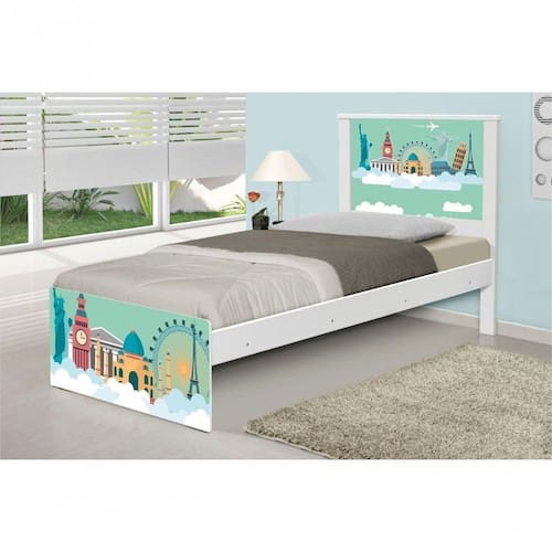 Cama Solteiro Mundo Viagens Com Colchão Cama Solteiro Juvenil Barcelona Adesivada Mundo Viagens com Colchão Ref. 1428