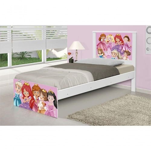 Cama Solteiro Princesinhas Com Colchão Cama Solteiro Juvenil Barcelona Adesivada Princesinhas com Colchão Ref. 1412