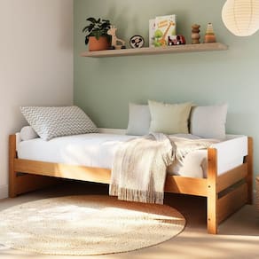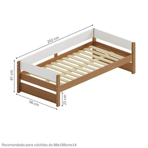 A Cama Solteiro Reversível Aria Casatema MadeiraOriginals é a essência da Linha Aria, uma peça que evolui com seu filho, unindo a força da madeira maciça com a leveza do design inteligente. Fabricada 100% em madeira de pinus com acabamento em verniz fosco nogueira e toques de MDF laqueado branco, esta cama é um investimento em Qualidade e Durabilidade, garantindo anos de uso seguro e confortável. Sua característica reversível é a chave para o conceito da linha: pode ser montada baixa, no estilo montessoriano, estimulando a autonomia dos pequenos, ou na altura convencional, adaptando-se perfeitamente ao crescimento. A solidez da estrutura garante a Segurança Prioritária, proporcionando tranquilidade aos pais. Com seu design atemporal, que incorpora a fluidez da madeira e os contornos suaves, ela adiciona um Toque de Sofisticação e Aconchego ao quarto, criando um refúgio acolhedor que acompanha as fases da infância com harmonia e poesia. Acompanha Cama Auxiliar: Não Acompanha Colchão: Não Acompanha Dossel: Não Acompanha Móbile: Não Acompanha Suporte para Mosquiteiro: Não Altura do Estrado até o Chão: 30,5 cm Ambiente Principal: Quarto Infantil codigo_ean: 7900288269218 Complexidade da Montagem: Média: pode ser montado por mais de uma pessoa e/ou necessite de maior conhecimento para montagem Cor: Nogueira/Branco Cor do Produto: Nogueira/Branco Escala de Brilho: Semi-Fosco Itens Inclusos: 1 Cama Solteiro, Manual de Montagem e Kit Ferragens Linha ou Coleção: Aria Manual de Montagem e Instalação: https://product-hub-prd.madeiramadeira.com.br/460456918/documents/9528e0aa-e502-4ccb-9bfd-baa0150756943287530338717611429512962.pdf Marca: Casatema Material do Estrado: Madeira Maciça Material Principal: Madeira Maciça modular: Não Montagem Flex: Pode ser montado como cama padrão ou montessoriana Necessita Montagem: Sim Origem do Produto: Nacional Permite a Utilização de Cama Auxiliar: Sim Peso: 31,5 kg Possui Baú: Não Possui Gavetas: Não Possui Pés: Não Possui Portas: Não Possui Prateleiras: Não Recomendações de Uso, Manutenção e Limpeza: Na limpeza não utilizar produtos químicos e abrasivos, usar apenas um pano umedecido, para garantir a maior durabilidade do móvel. Sistema de Montagem: Parafusos, cavilhas e porcas Suporta Até (kg): 100 kg Tamanho do Colchão Indicado (L x C): 188cm x 88cm Tipo de Cama: Infantil Tipo de Colchão: Solteiro Tipo de Estrado: Fixo Tipo de Grade de Proteção: Grade Tipo de Madeira Maciça: Pinus