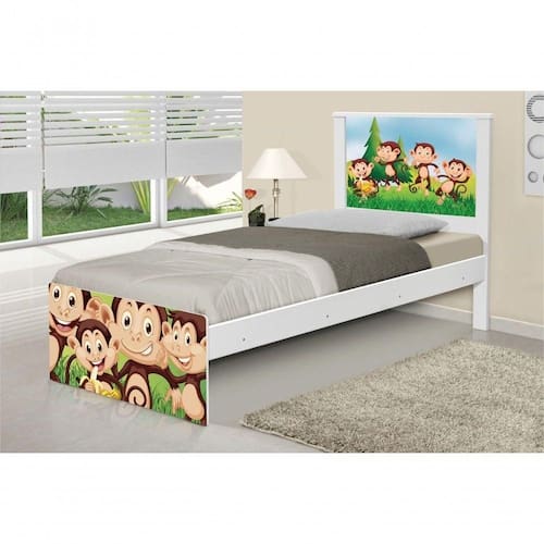 Cama Solteiro Safari Macaquinhos Com Colchão Cama Solteiro Juvenil Barcelona Adesivada Safari Macaquinhos com Colchão Ref. 1451
