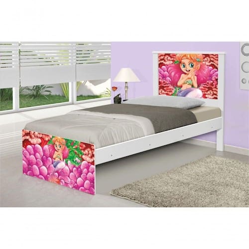 Cama Solteiro Sereia E Corais Com Colchão Cama Solteiro Juvenil Barcelona Adesivada Sereia e Corais com Colchão Ref. 1418