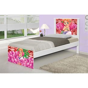 Cama Solteiro Juvenil Barcelona Adesivada Sereia e Corais
